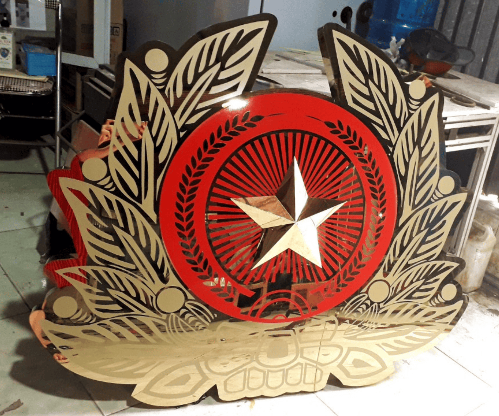 Logo quốc huy bộ công an là sản phẩm thường được lắp đặt trước cổng ra vào hoặc treo trên lóc tòa nhà của hội trường hay trụ sở của Bộ Công An vì vậy sản phẩm này thường xuyyên tiếp súc trực tiếp với nắng mưa, gió bão quanh năm luôn luôn phải chịu thời tiết khắc nhiệt của khí hậu cho nên phần đa nhà sản xuất chuyên nghiệp có kinh nghiệm và thâm niên trong nghề lâu năm mới thấu hiểu và biết được nên dùng chất liệu gì để bảo đảm cho sản phẩm giữ được màu sắc cũng như độ bền của vật liệu với thời gian. Qua quá trình đúc kết chúng tôi đã lựa chọn sản chất liệu inox 304 này làm nền tảng cho sự phát triển của những sản phẩm được dùng để làm ngoài trời và đến hôm nay cũng là sự sự chọn của những khác hàng, đối tác tin dùng trong suốt thời gian qua.